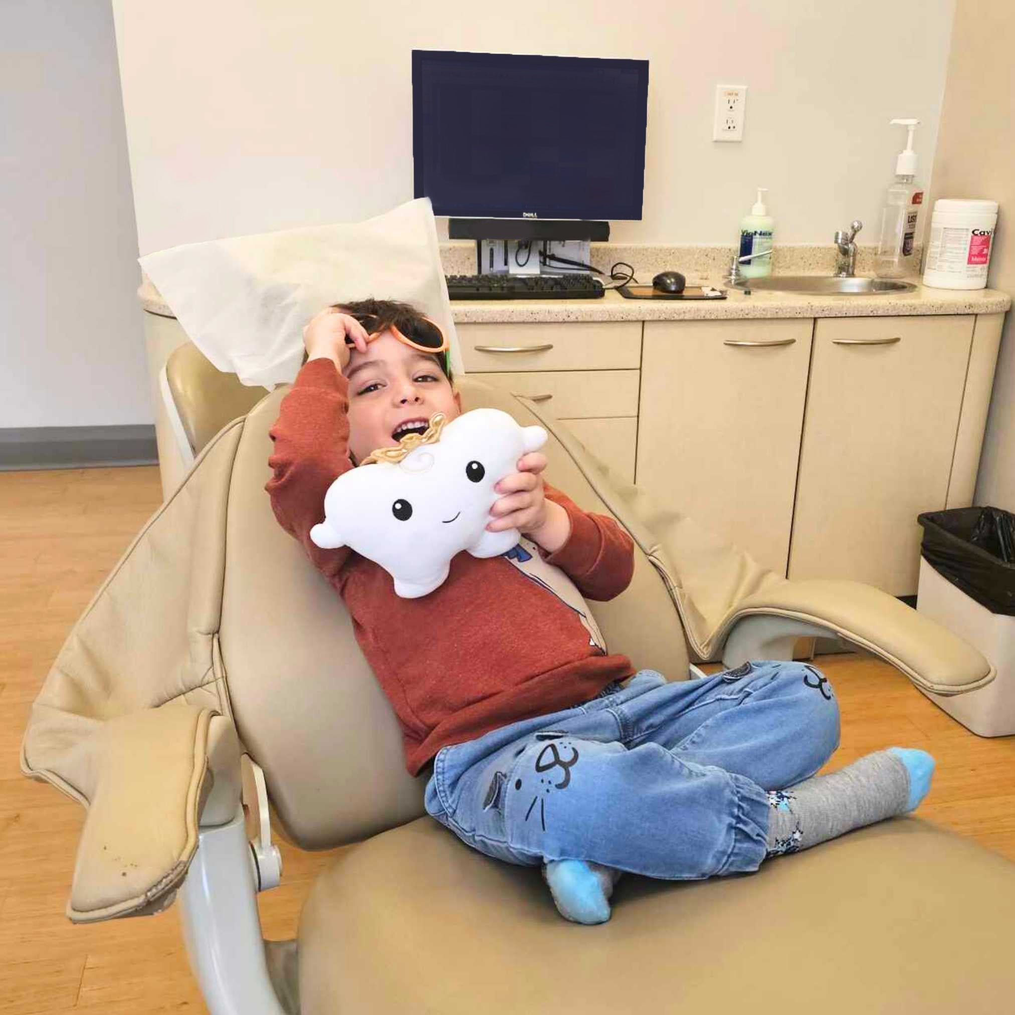 Kids love bringing Toothy to the dentist for comfort (plus the special pocket makes Tooth Fairy moments magical!).