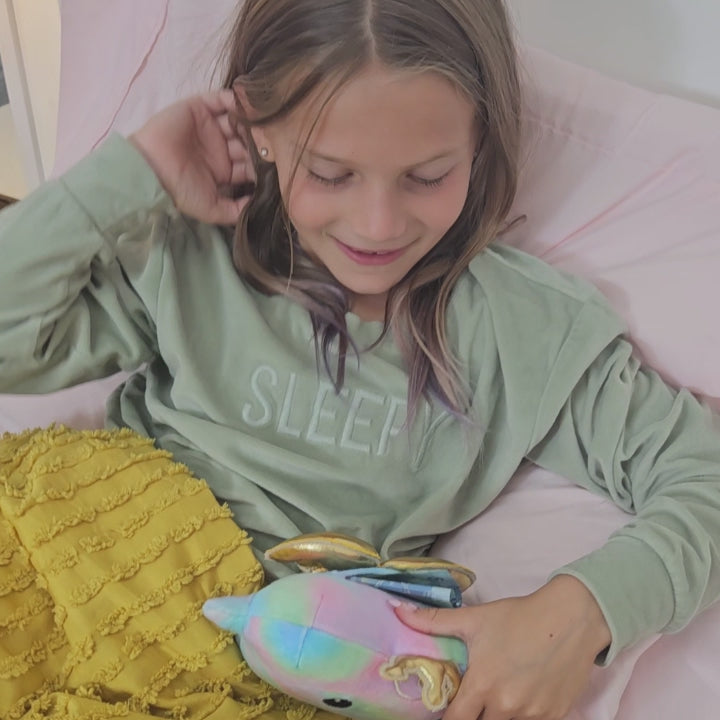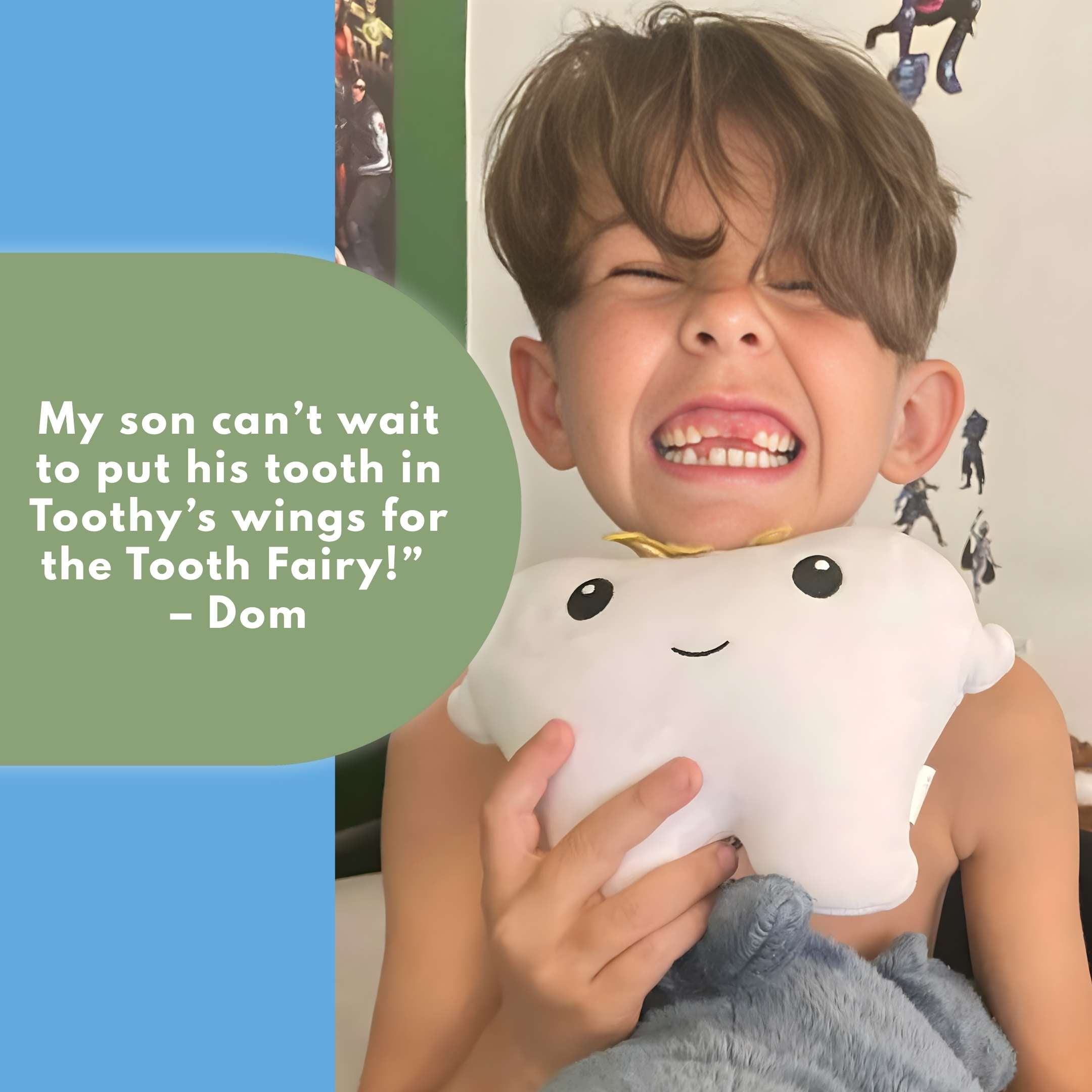 That’s me! I’m super cuddly and always by your side, at home or at the dentist. Plus, I have a Golden Pocket on my back for the Tooth Fairy to use!